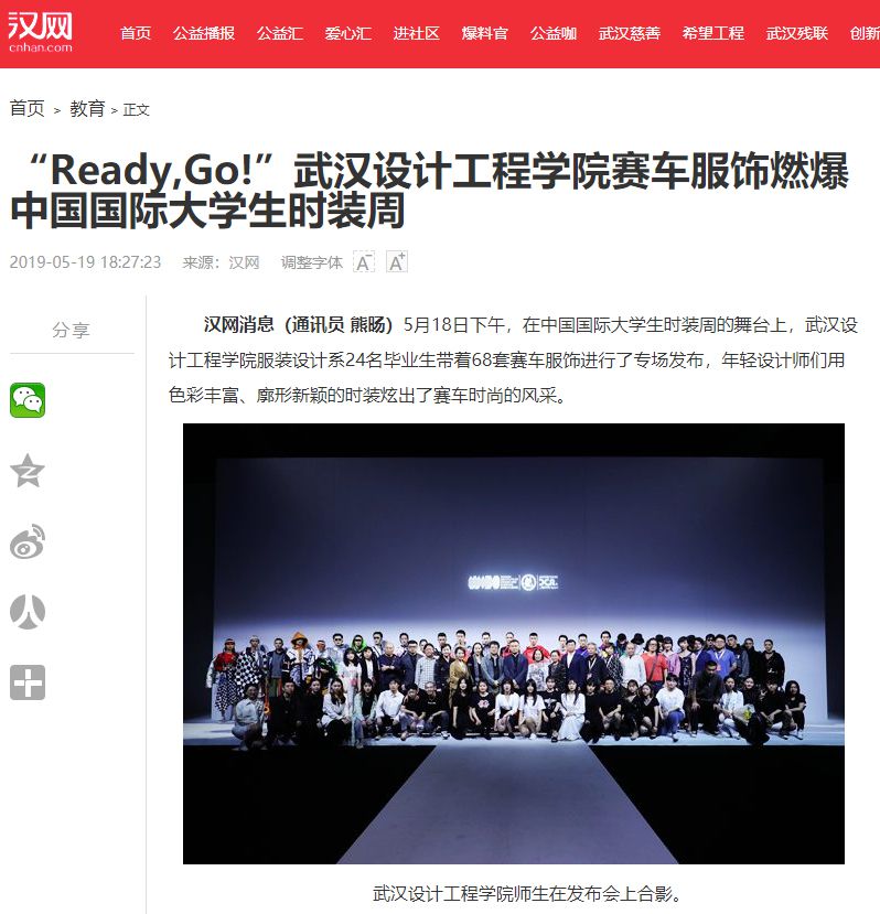 汉网消息(通讯员 熊旸)5月18日下午,在中国国际大学生时装周的舞台上,pp电子官方网站服装设计系24名毕业生带着68套赛车服饰进行了专场发布,年轻设计师们用色彩丰富、廓形新颖的时装炫出了赛车时尚的风采。