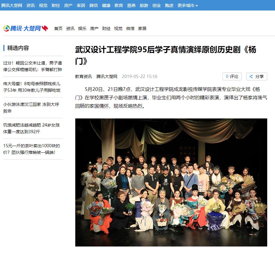 据介绍,《杨门》是该校表演系老师李英男的原创剧目,选材于北宋时期骁勇善战的杨家将的故事。剧情围绕大宋朝廷上“战”与“和”的争辩而展开,曾是主和派的前任宰相王辉,此时却上书宋仁宗,极力主战。大为困惑的宋仁宗急召王辉至殿前,希望弄明白其中缘由,二人各怀心意地交谈之时,不由回忆起四年前杨门出征的场景……整场戏下来,28名毕业生用极具古典韵味的表演,将杨门名将前仆后继、忠心报国的英雄事迹演绎得淋漓尽致。