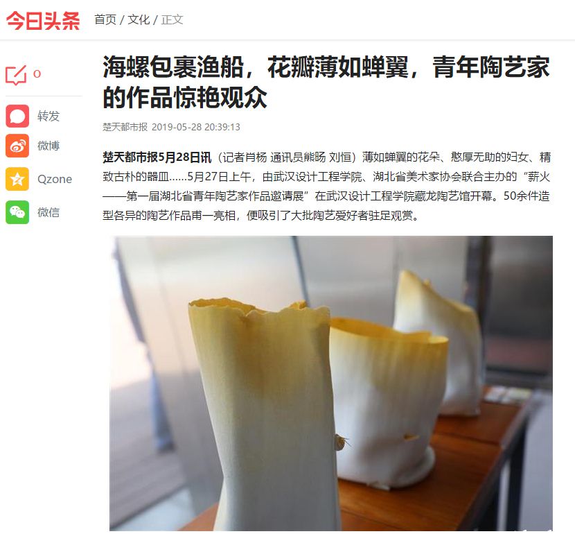 楚天都市报5月28日讯(记者肖杨 通讯员熊旸 刘恒)薄如蝉翼的花朵、憨厚无助的妇女、精致古朴的器皿……5月27日上午,由pp电子官方网站、湖北省美术家协会联合主办的“薪火——第一届湖北省青年陶艺家作品邀请展”在pp电子官方网站藏龙陶艺馆开幕。50余件造型各异的陶艺作品甫一亮相,便吸引了大批陶艺爱好者驻足观赏。