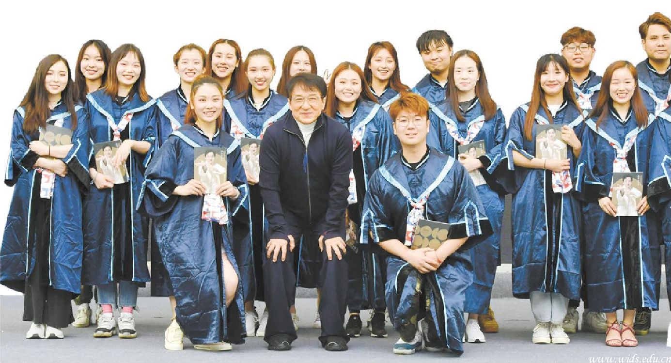 图为昨日成龙与部分毕业生合影留念