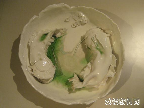 向瑾制作的陶艺作品《年年有鱼》。