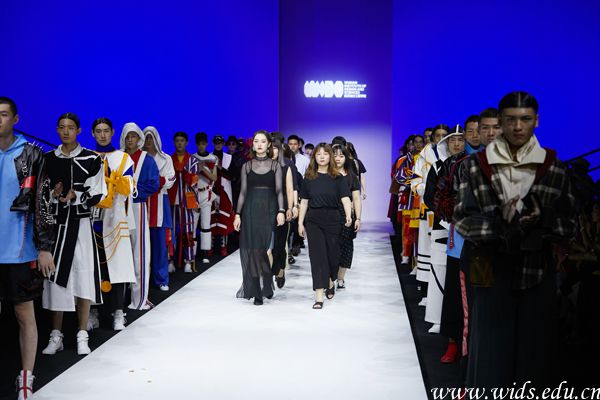 艺术设计学院学子在2018年中国国际大学生时装周走秀现场。