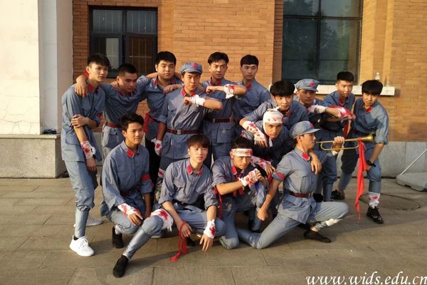 胡嘉树(一排右一)和伙伴们一起筹备“五月的花海”合唱比赛。
