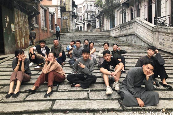 谭炜千禧和同学们在上海实习合影。