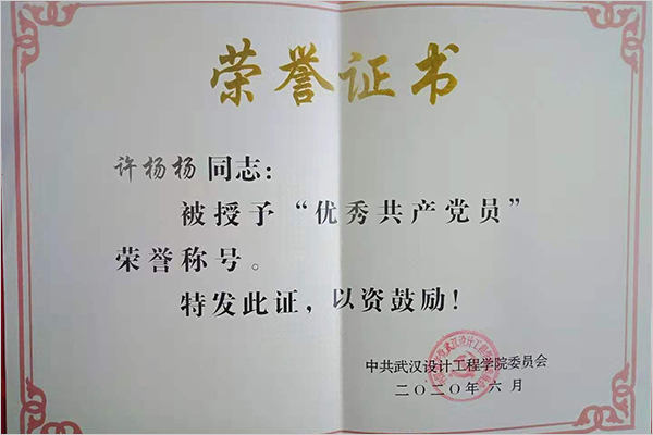 许杨杨被授予校“优秀共产党员”荣誉称号。