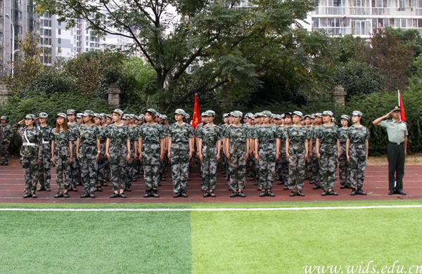 “首长好!”、“为人民服务!”……各连队在接受检阅时口号声响彻整个校园,一身军装的“千禧”新生们一排排、一列列都挺直了身躯,在烈日当空下纹丝不动的站立着军姿,精神饱满,斗志昂扬,彰显着军人风采。