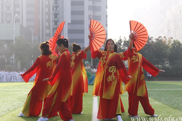 校武术队扇子舞,一招一式动作刚毅,巾帼不让须眉。